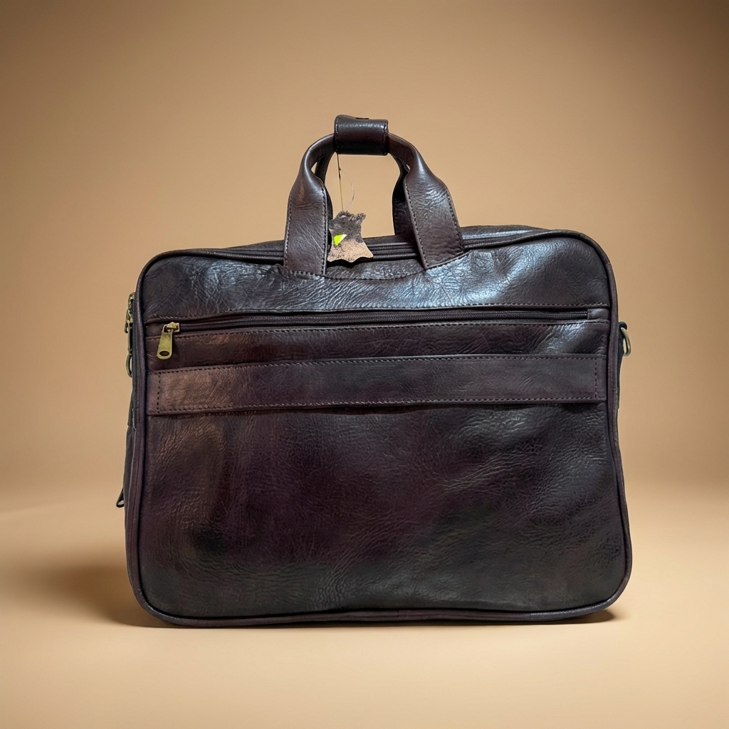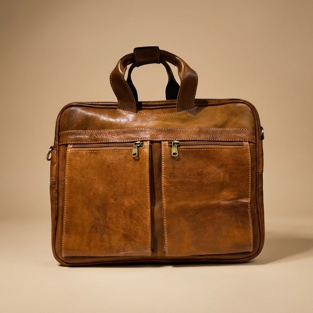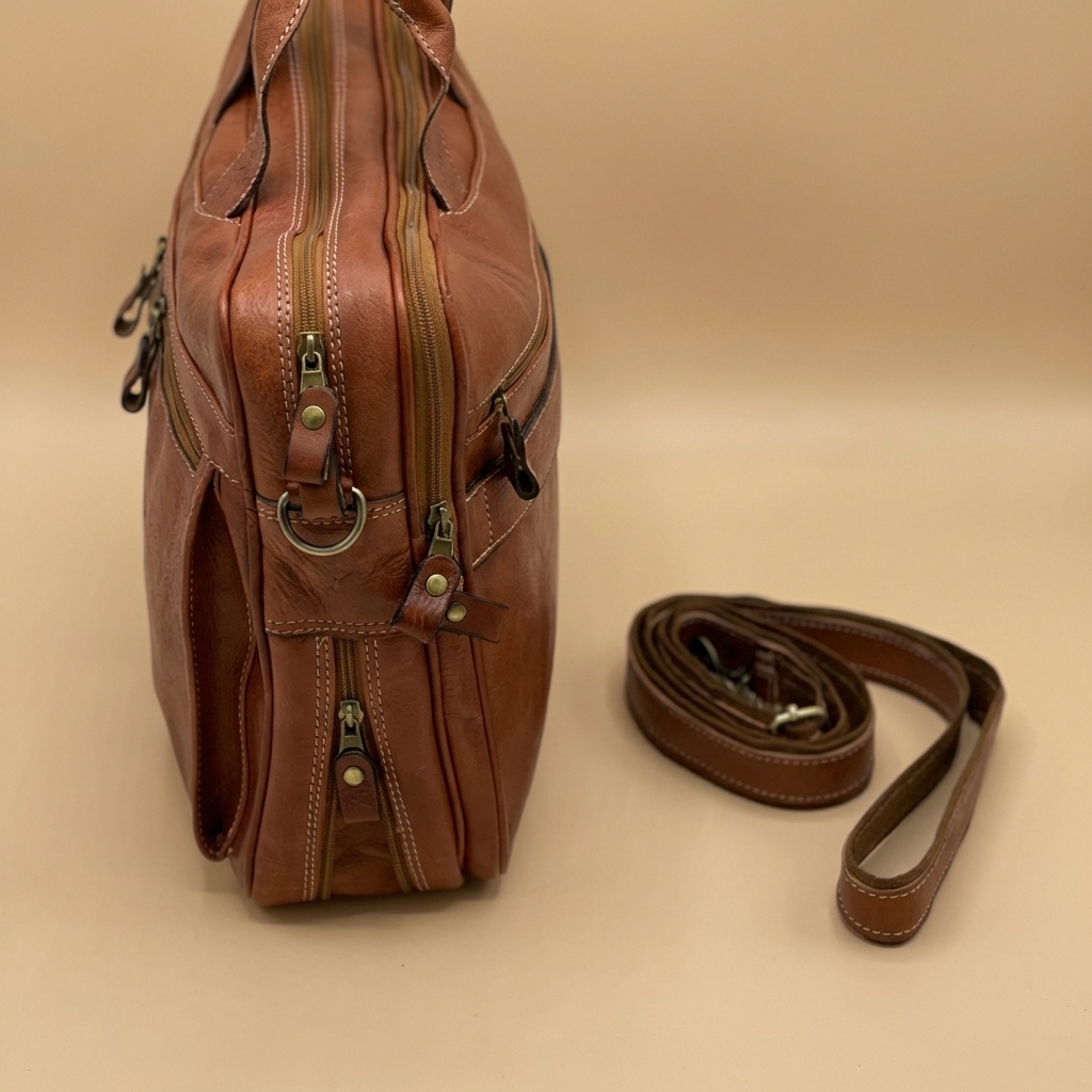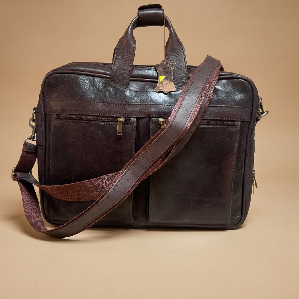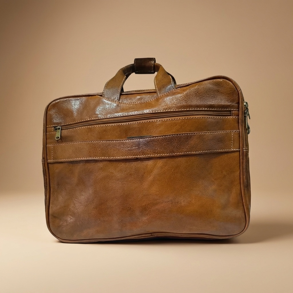 Cartable en cuir de veau tanné à la main, idéal pour un usage professionnel et académique, alliant style vintage et fonctionnalité moderne.