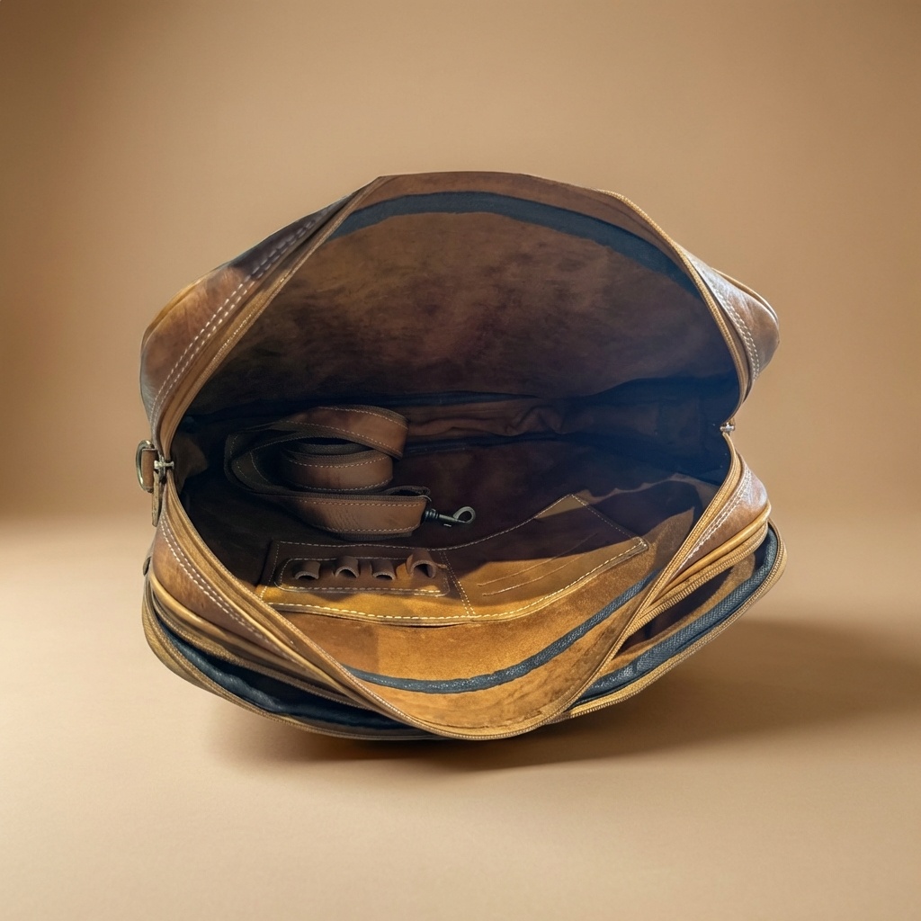 Le Sac de voyage Cèdre Impérial, en 100% cuir véritable et finition premium, est un accessoire deux-en-un exceptionnel. Il se transforme astucieusement en porte-costume, idéal pour des voyages d’affaires ou escapades élégantes, alliant luxe et fonctionnalité.