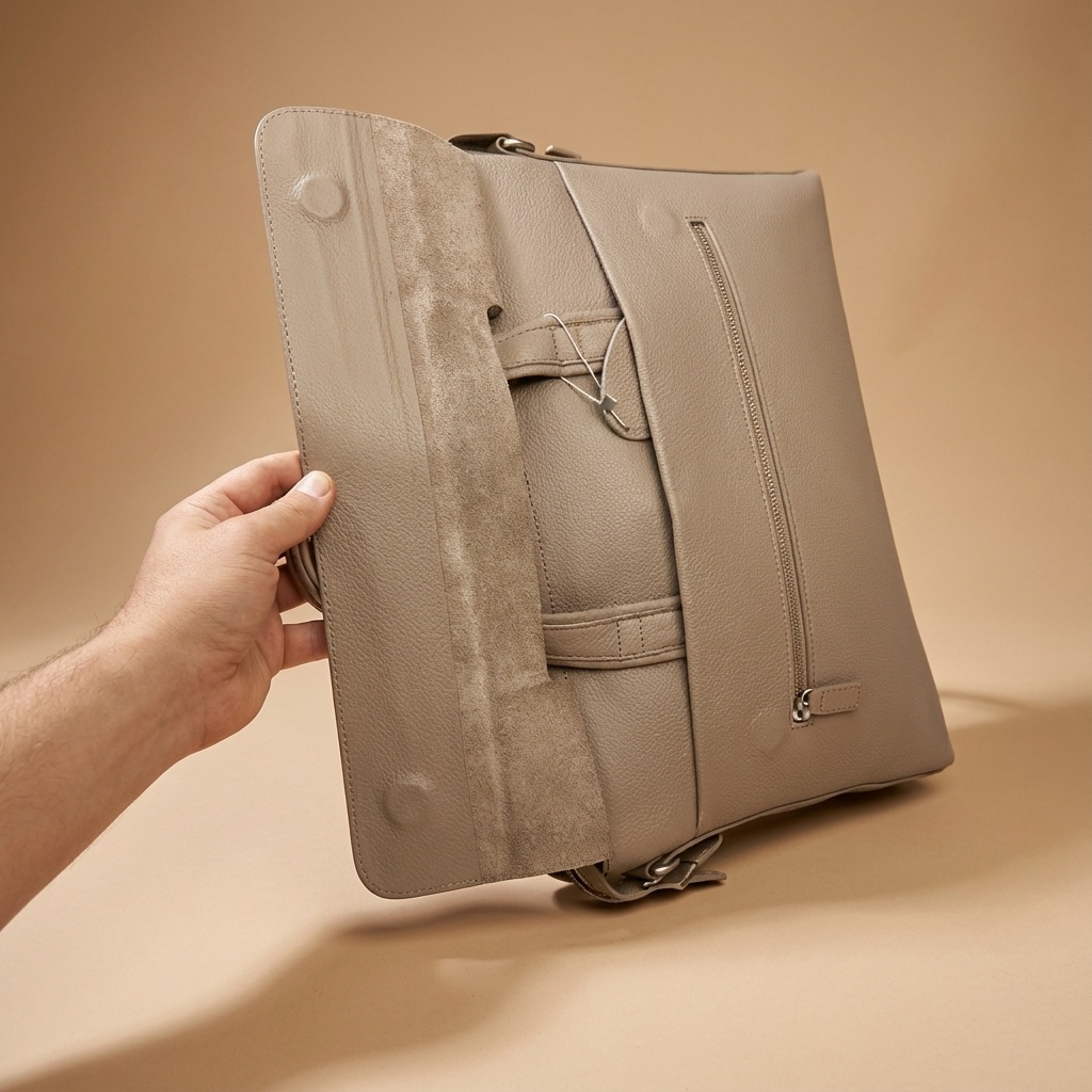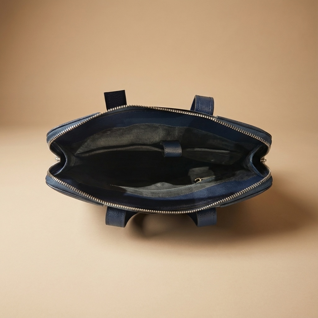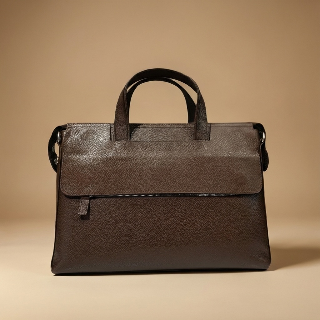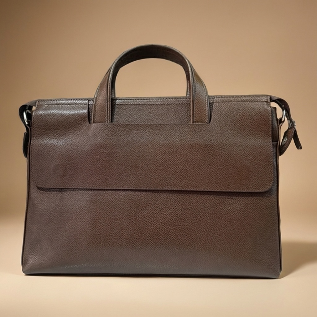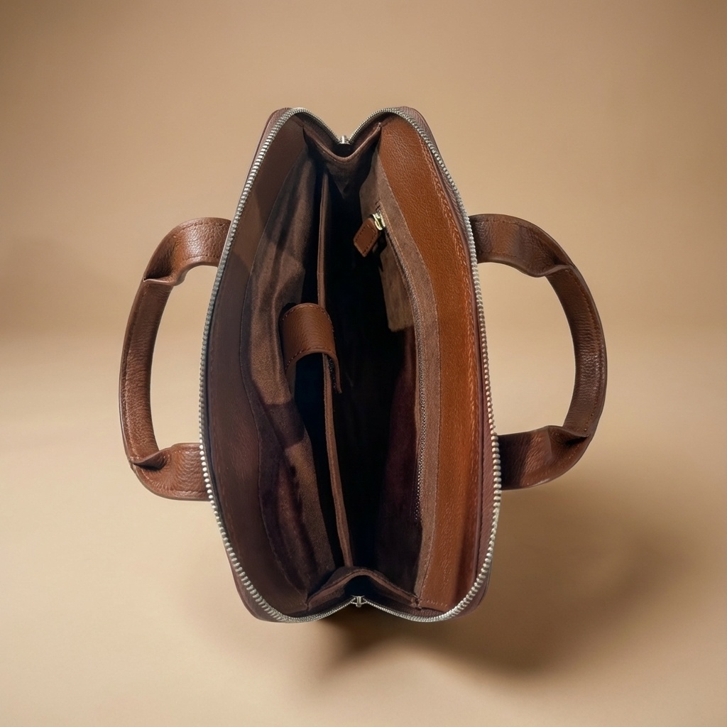 Cartable en cuir de veau tanné à la main, idéal pour un usage professionnel et académique, alliant style vintage et fonctionnalité moderne.