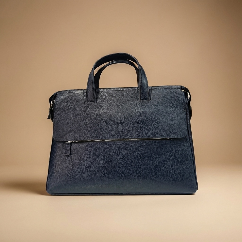 – Particularité : Confectionné en cuir grainé présentant une surface granuleuse et un relief visible. Rehaussé de surpiqûres apparentes et régulières, de tranches peintes, d’une structure rectangulaire rigide et de poignées supérieures arquées. Il intègre un rabat frontal dissimulant un compartiment extérieur et un compartiment principal avec fermeture à glissière.