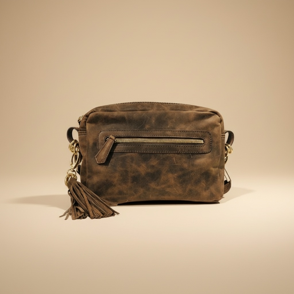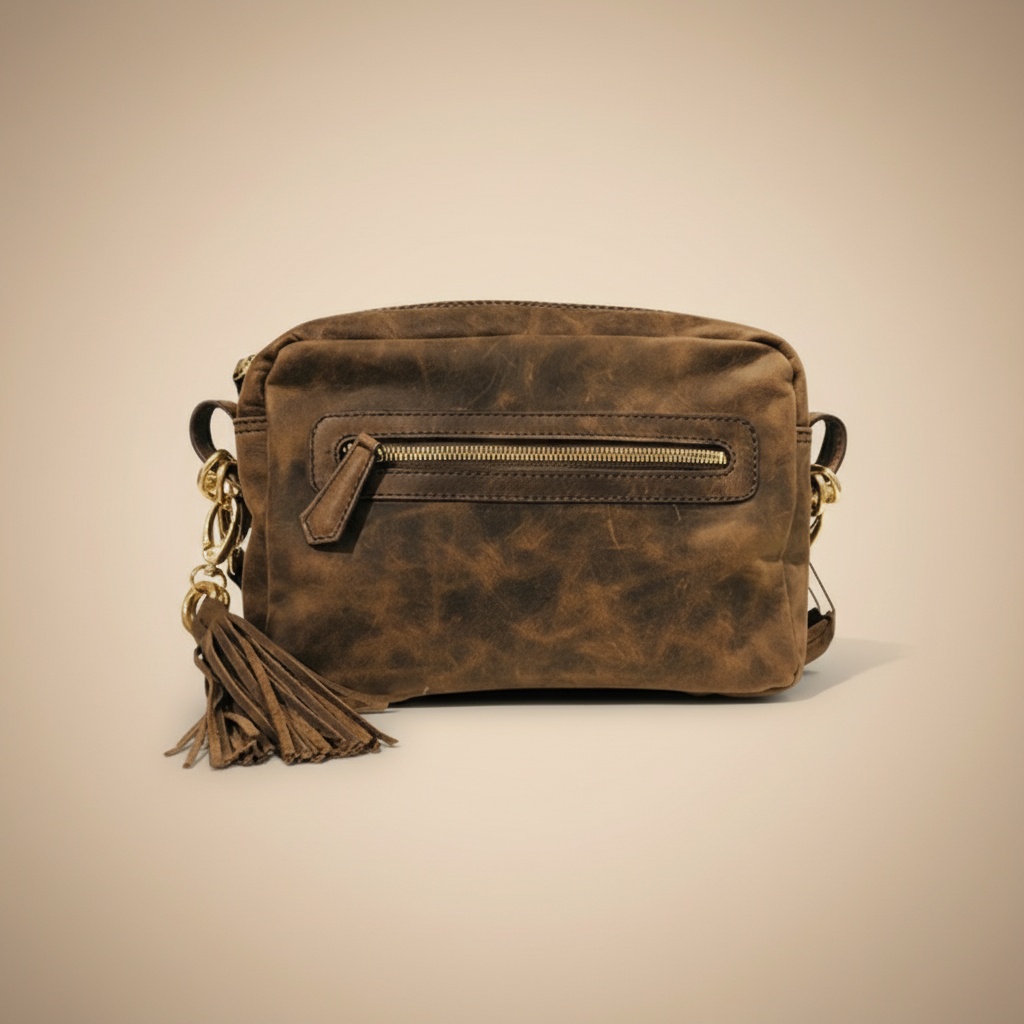 – Particularité : Style vintage et rustique avec patine naturelle, poche frontale zippée, fermeture principale zippée, et un gland décoratif en cuir.