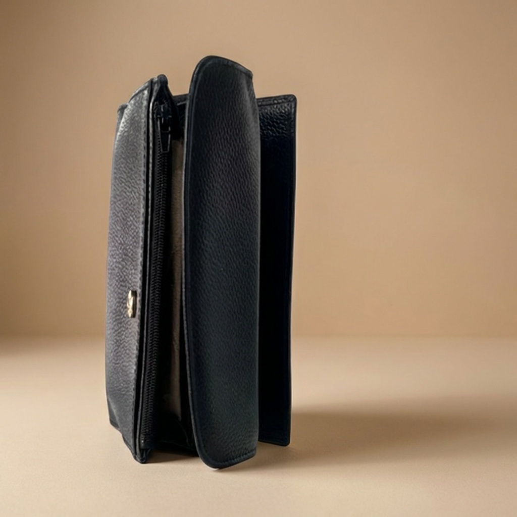 – Particularité : Cuir 100% premium avec finition impeccable, intégrant plusieurs compartiments internes pour une organisation optimale de vos cartes et billets.