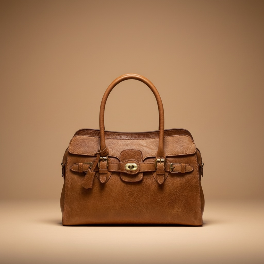 – Particularité : Son design intemporel de type cabas ou satchel, avec un aspect vieilli (distressed) qui lui confère beaucoup de caractère, des sangles décoratives à boucles métalliques, et un fermoir tournant (turn-lock clasp) centralisé en laiton massif pour une fermeture stylée et sécurisée.