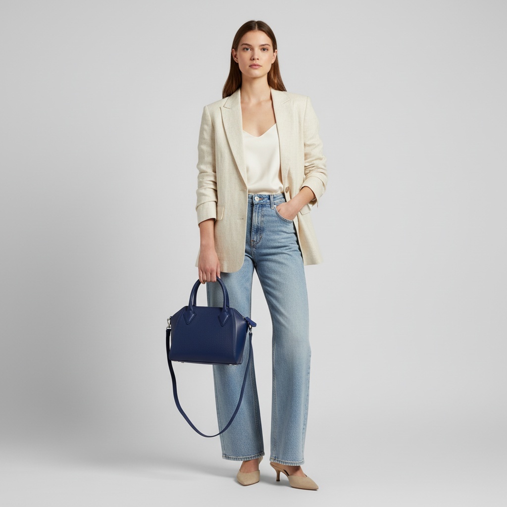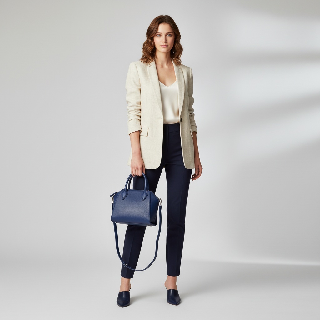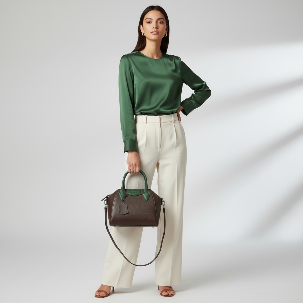 – Confort : Léger et doté de deux poignées courtes pour un porté élégant à la main ou au creux du bras, et d’une bandoulière amovible et ajustable pour un porté épaule ou croisé (crossbody), offrant une polyvalence optimale.