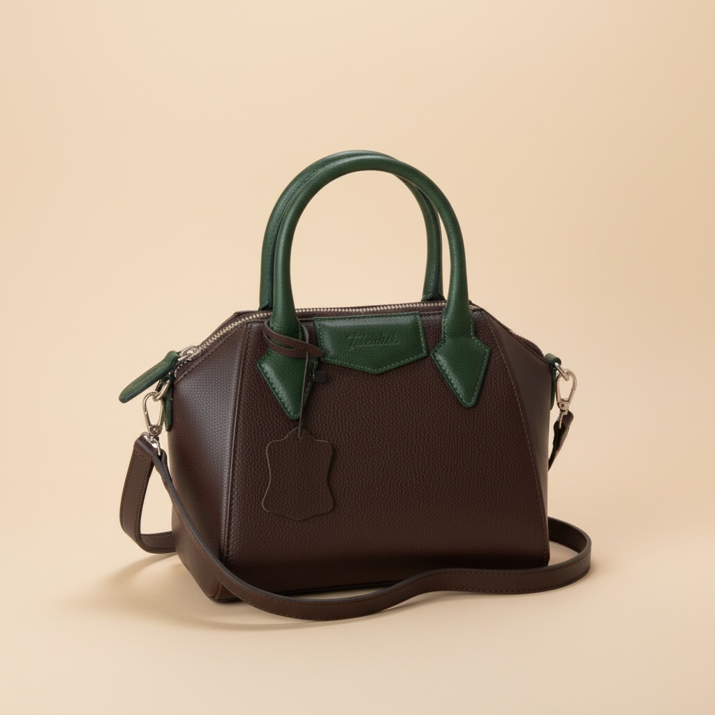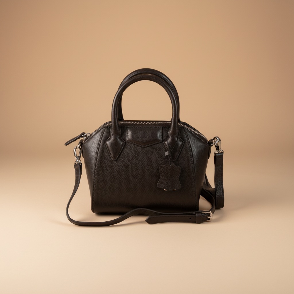 – Particularité : Design iconique inspiré du célèbre modèle Antigona de Givenchy avec sa forme trapézoïdale distinctive, bénéficiant du savoir-faire artisanal marocain de Bontelli, rehaussé de détails structurés comme une couture triangulaire et une petite étiquette en forme de peau de cuir suspendue.