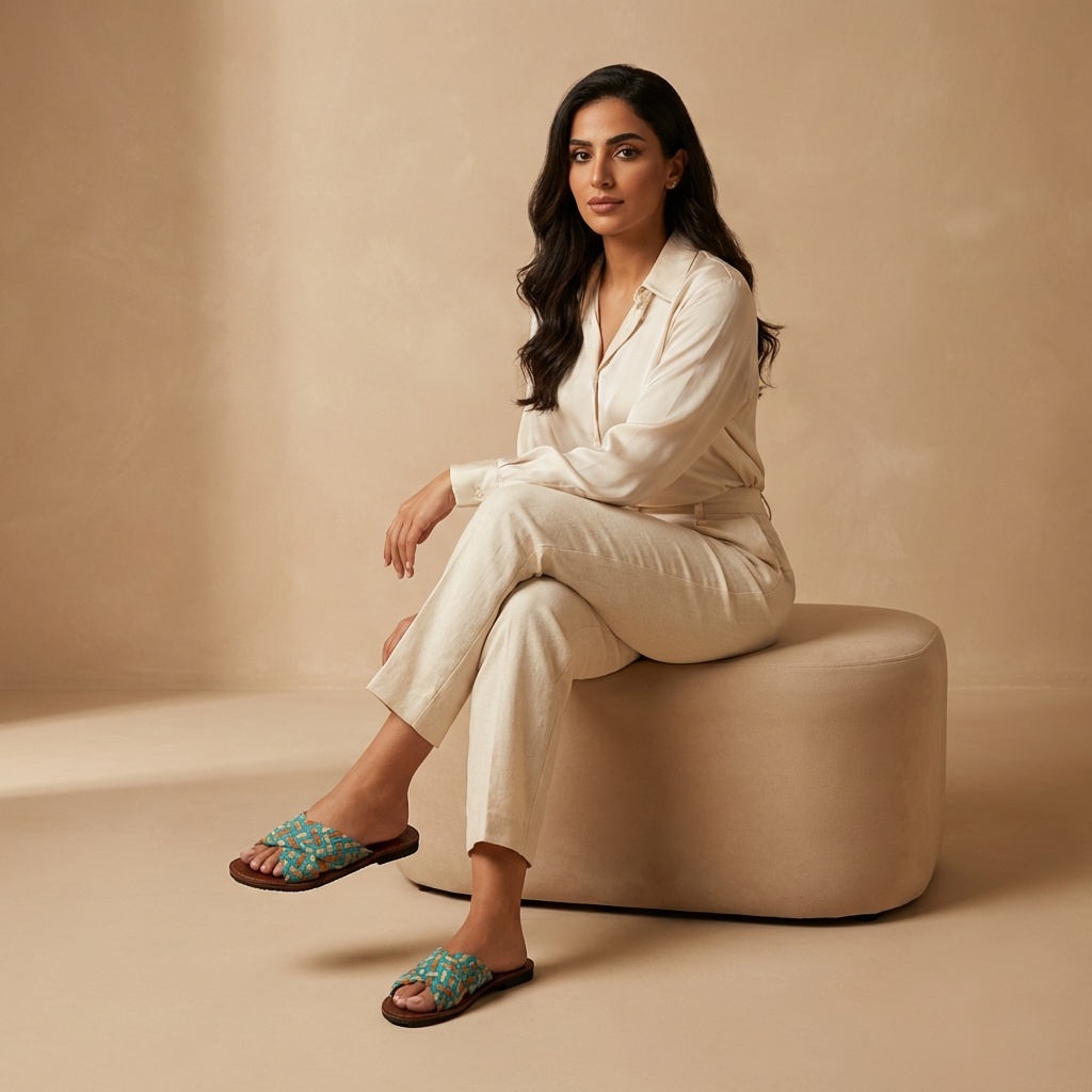 Les Sandales en cuir Oasis Pétales allient élégance artisanale et confort suprême. Leur design tressé en daim offre un style intemporel, une ergonomie parfaite et une durabilité exceptionnelle. Idéales pour vos escapades ensoleillées et sorties décontractées.