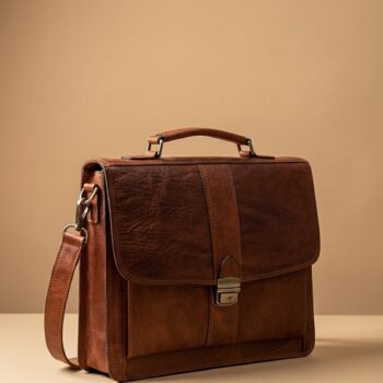 Cartable en cuir de veau tanné à la main, idéal pour un usage professionnel et académique, alliant style vintage et fonctionnalité moderne.
