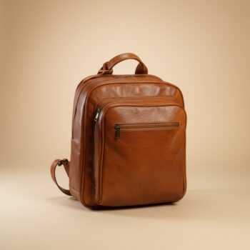 Découvrez le sac à dos en cuir camel, idéal pour transporter votre ordinateur portable et tablette avec confort et style.