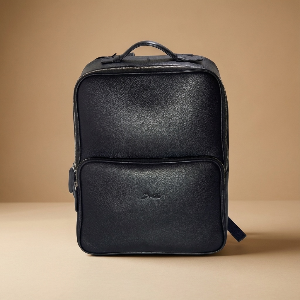 – Particularité : Style intemporel et épuré avec un design minimaliste, facile à assortir et disponible en marron, noir ou bleu. Il dispose de deux grands compartiments zippés distincts (un principal et une grande poche frontale) pour une organisation efficace. Un logo discret est embossé sur la poche frontale pour une touche de marque subtile.