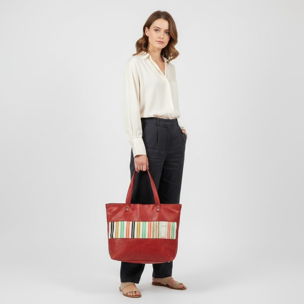 Laissez-vous charmer par le Sac cabas Rose Grâce, une œuvre artisanale qui célèbre la rencontre authentique du cuir et de l’art textile berbère. Chaque détail de ce cabas fait à la main incarne notre engagement pour un savoir-faire d’exception et la préservation d’un riche patrimoine.